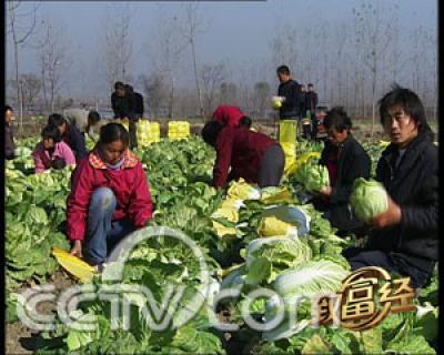记者高洁:安徽省蒙城县有4万亩的白菜种植面积,我现在所在的马店村是蒙城县最大的白菜生产基地,2007年,仅这一个村销往山东的泡菜加工企业出口到韩国、日本的大白菜就有1.4万吨。但是到了2008年情况却发生了变化。