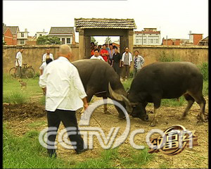 王礼庚:“水牛中的公牛就具备这种野性,公牛和公牛不能见面,一见面就打,今天我们给它拉开,如果不拉开牛就能打死掉。”