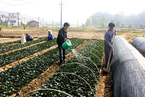 近日,岳西县店前镇杨胜村农民正在管理茶苗。在岳西稳生茶叶合作社的带动下,今年,杨胜村新发展茶叶育苗户25户,新增苗圃基地150亩,培育的舒茶早、龙井茶苗远销河南、陕西等地。