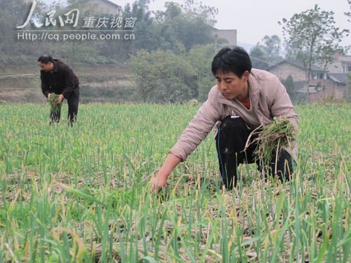 人民网重庆视窗12月20日电:12月19日,阴天。綦江县古南街道南山村村支书高思强忙得团团转,一边要组织村民到蔬菜基地锄草,一边还要为大伙计算上月的工钱。高思强笑着说,忙点好,忙点有“搞头”,全村70来户人家把土地集中流转承包给重庆坛香农业开发有限公司建蔬菜基地,这样一来,当地村民在自家地里打工,还能拿工资。