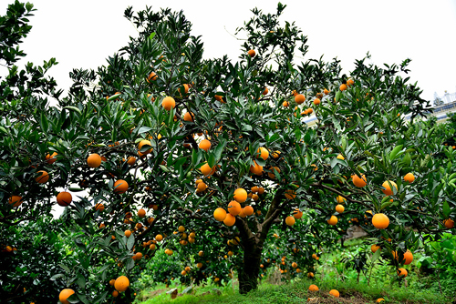 果园内挂满了丰收的脐橙