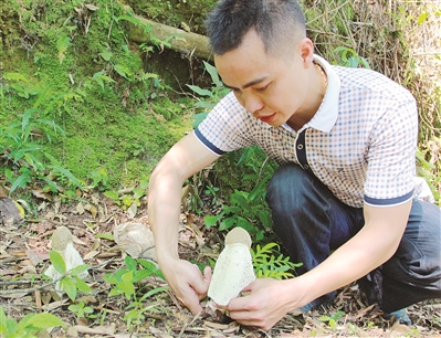 赖原龙在采摘成熟的竹荪