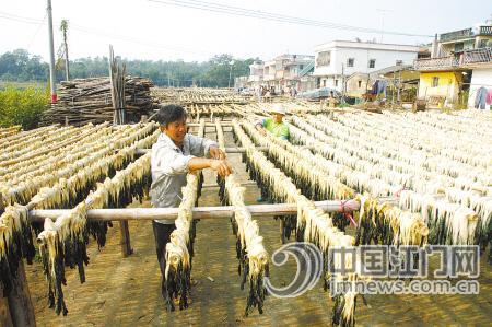 据悉,水步镇人开始晒白菜干只是自用,后来慢慢发展到拿到市场上卖,近年来才大规模晒菜干,现在晒白菜干已经成为村民增收的一大途径。据村民介绍,去年菜干的收购价格为每公斤16到24元,而今年升到了每公斤32到40元。到了出产菜干的时候,本地和周边新会、开平的不少商贩会直接到村里来上门收购,所以他们的菜干不但不愁卖不出去,而且比卖白菜要好。“我们种白菜、晒菜干晒出了名堂,去年经《江门日报》宣传,很快就有商家致电或上门。”