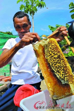 记者昨日获悉,在郭建强的精心照料下,新的蜂箱和蜜蜂最近给他带来了第一次好的收成,这位“爬坚强”喜收蜂蜜。