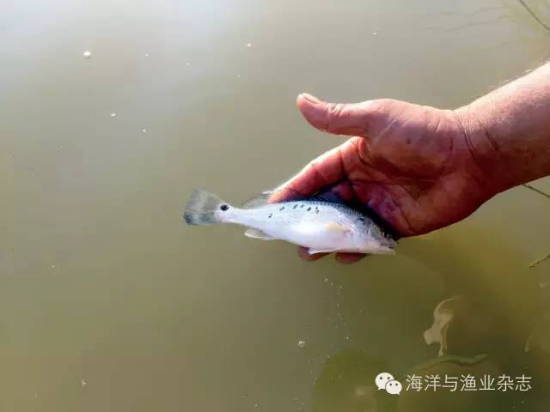 “第一次养殖失败,主要原因在于种苗运输时气温过高,鱼苗应激不适而死亡,再加上首次在7月份投苗,苗种入池工作没有做好。”不服输的牛大淼在2014年8月底又订购一了批规格2.5公分鱼苗进行养殖。吸取了上次的经验教训,这次他特别注意运输过程中温度和时间掌控,做好入苗前池塘培水和水质调控,更精细地进行鱼苗“标粗”。在珠海当地夏季大陆河流流入淡水较多,导致海水盐度很低,有时甚至是0,所以要注意测量水质各项指标,将池塘水调到一定盐度再放苗。放养密度为10~15万尾/亩,此时鱼苗较弱小,需要高蛋白饲料精细投喂,最佳饲料为鱼粉。