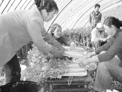 每日甘肃网讯 据兰州晚报报道 早晨五六点钟,西固区孟家山村村民董保英就走进自家的蔬菜大棚。芹菜长得非常旺盛,望去绿茵茵一片。董保英和前来给她帮忙的邻居开始采摘成熟的芹菜,两个多小时过去了,董保英把精心挑选的一捆捆新鲜芹菜搬上三马子,等太阳升起来时,董保英已经在西部市场开始批发了。“我们的芹菜当天采摘当天上市,品质新鲜,每斤批发价格1元。”这是记者昨日前往晚报村——孟家山村采访时,蔬菜种植户对记者如是说。