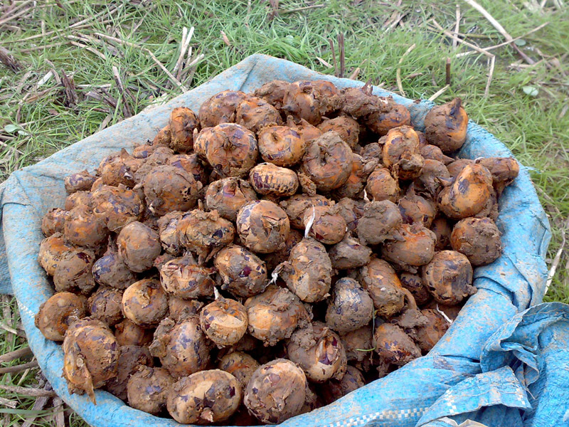 一年后,那埋在田里的马蹄发芽了,笔直笔直的叶梗,像利剑直指天空。正当人们感到奇怪的时候,仙马托梦给村民,说在这叶梗的下面有很好吃的果子。天亮后,水田的主人去把果子挖出来一尝,果然不错,清甜脆嫩,好吃极了。