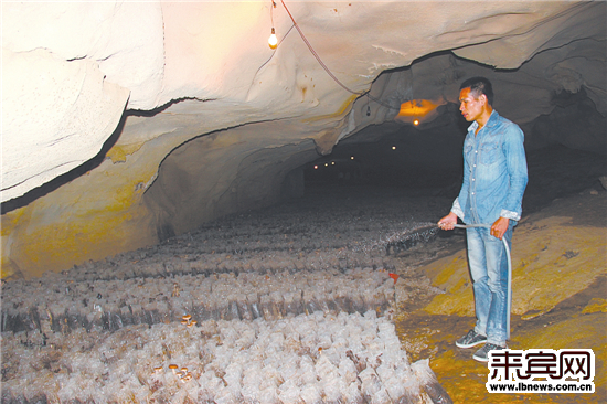 在合山市河里乡古楼村,一个1000多平方米的山洞内,从福建跟随女友到合山创业的李思欣在这里开始了他在山洞种蘑菇的创业故事。