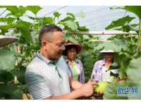 10月11日,欧高龙(左一)向果蔬基地的工作人员传授哈密瓜种植技术。