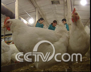 养鸡户 祁艳忠:“直到2004年、2005年已经市场上开始大规模有817这个品种,而且普遍这个品种在市场上销售,不论是做哪种口味的鸡,消费者普遍欢迎。”