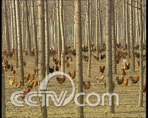 在当地政府的引导和扶持下,从2003年开始,一些老百姓开始承包林地来养起了当时市场上俏销的柴鸡。