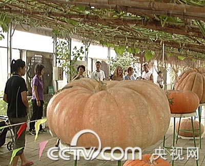 500斤一个的大南瓜、4米长的丝瓜、长在空中的红薯。吸引游客的正是这些平日里普通得不能再普通,在这里却长得特别奇特的瓜果蔬菜。