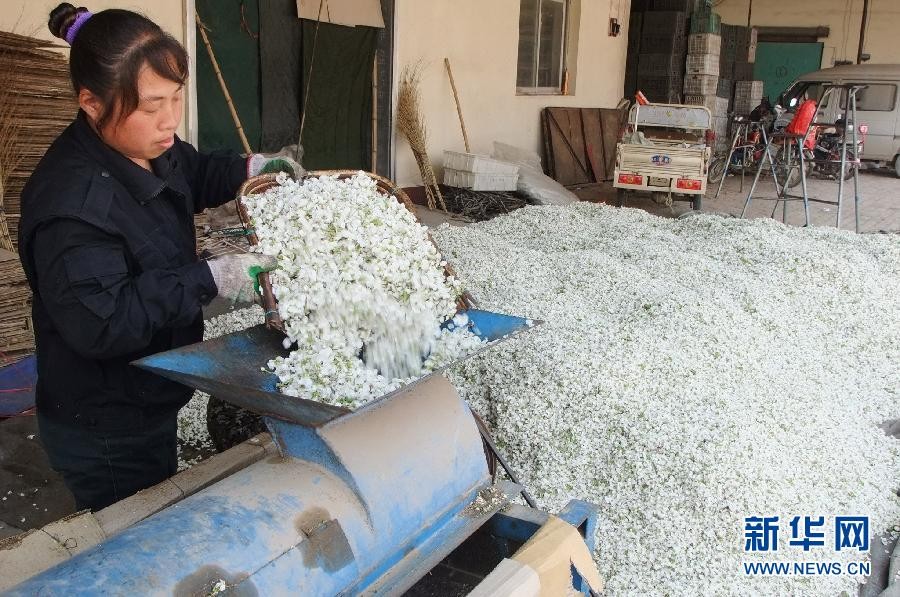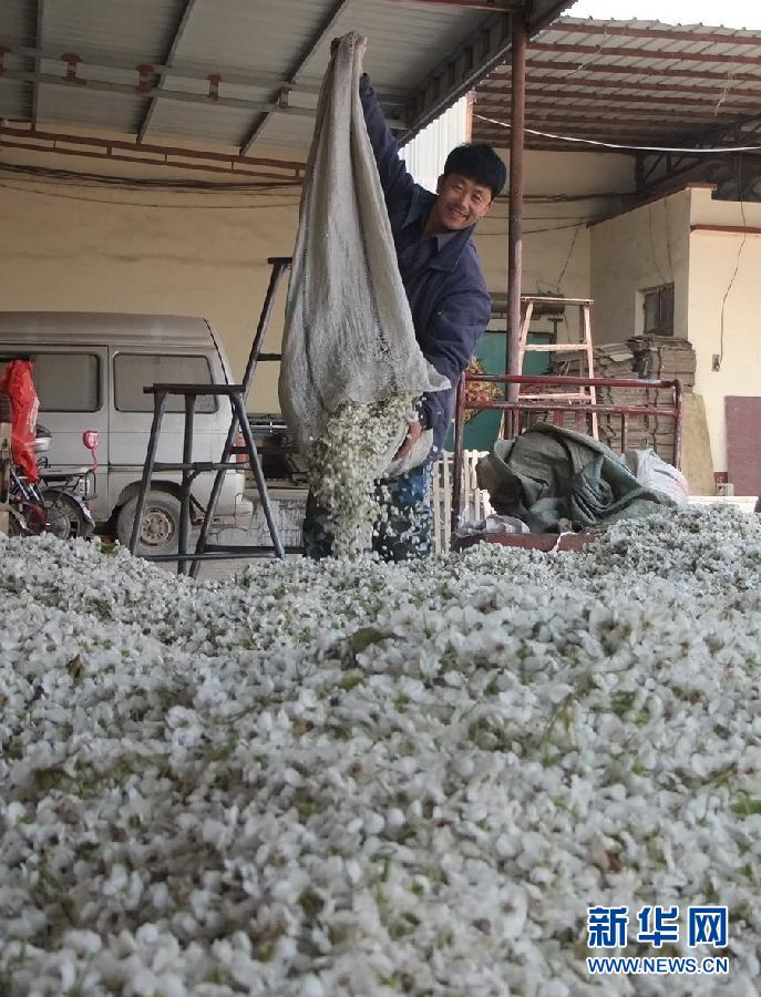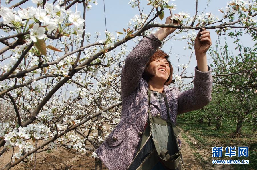 当前正值梨树盛花期,林果大市――河北省深州市果农又开始忙碌起来。近年来,当地果农变废为宝,将以往疏花过程中白白浪费的梨花收集起来制成粉,成为化妆品原料,每年加工梨花达20吨,开辟了增收新途径。新华社记者王民摄