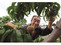 7月29日,在河北省孟村回族自治县东兴食用菌合作社种植灵芝的大棚中,村民王英展示刚刚摘下的灵芝。
