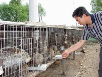 36岁的李志伟在格球山农场工会的扶持下,饲养乌苏里貉4年,在连续两年赔钱的情况下,仍坚持走养貉致富这条路。现饲养种貉乌苏里貉12组、36只,今年,已繁殖仔貉120多只,在貉皮价格大幅回升的情况下,预计今年可获利3万余元。图为李志伟在给仔貉喂食。