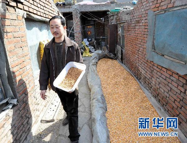 3月28日,李长顺准备用饲料喂鸡。