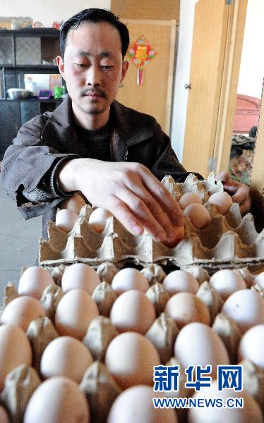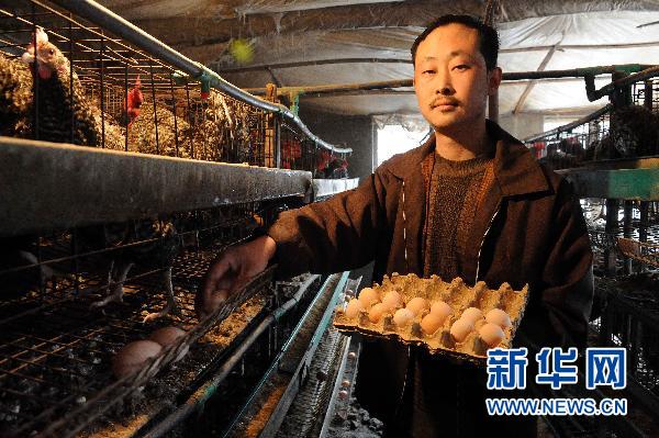 3月28日,李长顺在鸡舍中捡鸡蛋。