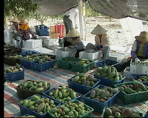 2007年陈运志依旧使用这种销售方式,这让客商俞程旺感到不满。2007年四月我们采访时,正值南滨农场的第二批芒果销售旺季,大量经销商聚集在这里,种植户选择余地很大,所以要价较高。为了不让自己在浙江的当口断货,俞程旺只有出高价包下陈运志的这些芒果。