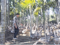 光扩大槟榔的养殖规模还不够。看到贫困户纷纷脱贫踏上致富路,他致富的念头也越来越强烈。在贫困户的脱贫经验中,罗学忠开始探索属于自己的致富路。“门前屋后有池塘,有槟榔林,养鸡的人太多,不如养鹅试试看?”于是,他大胆尝试养鹅。能吃苦耐劳,又肯钻研,罗学忠很快成为养鹅领域的行家里手。