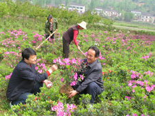 湖北省谷城县五山镇堰河村农民任安平(右),自2001年起,在五山信用社的贷款支持下,培育杜鹃、西鹃、毛鹃、东鹃、夏鹃等各类杜鹃近2000 万株。2008年,他卖出的杜鹃首次突破150万株,产品销往宜昌、十堰等多个大中城市,成为远近闻名的“杜鹃大王”。