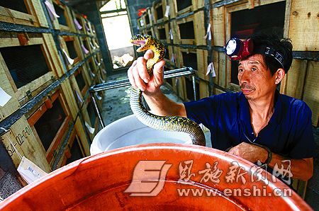 鄢伯伦十分清楚,养殖技术不过关一直是蛇类养殖发展的最大障碍,他出重金从湖南、江西等地聘请蛇类养殖专家进行技术指导。虽然养蛇一年能给鄢伯伦带来200多万元的纯收入,但企业生产过程中也还存在养殖的风险、销售等方面的风险。然而,鄢伯伦对他的养蛇计划信心十足!