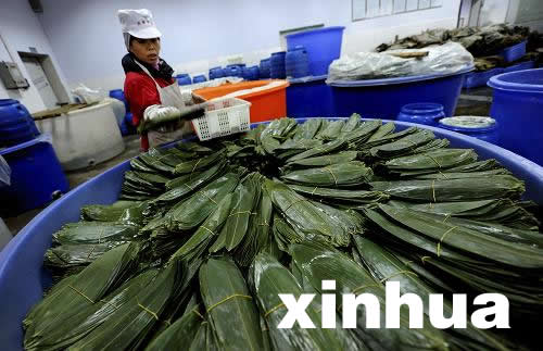 12月13日,湖北恩施宣恩县一家农产品公司的员工在加工箬叶。新华社发