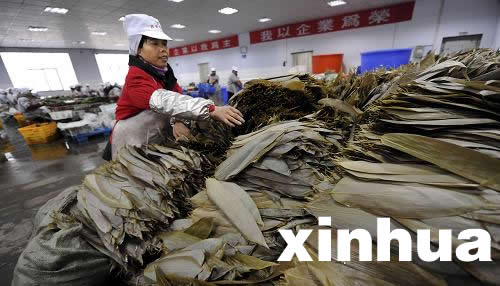 12月13日,湖北恩施宣恩县一家农产品公司的员工在加工箬叶。 新华社发