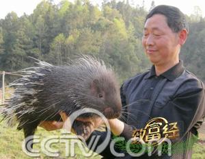 他就是三层楼房的主人----周光丰,他的财富全部来自这些浑身是刺的东西――豪猪。现在周光丰养着1000多头豪猪,一年就有100多万元收入。春天是豪猪产仔的旺季,周光丰的养殖场每天都有十几头小豪猪出生,要检查这些小家伙可不是件容易的事。