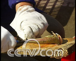 黄保华的妻子黄爱娥:“我们说这怎么办呢,想了个办法,就从鳃那里一抠,学老方法就腌,就这样把他腌掉了。”