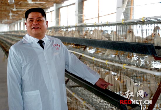 考察一回来,他立马投入60万元,还货款40万元,引进了3000羽当时最优良的“京白989”品种。在陬市镇毛家桥,全县第一家规模化蛋鸡养殖基地 ——桃源县三尖农牧有限公司正式挂牌成立。三尖向加盟的农户承诺,由公司负责包种鸡苗提供、包饲料提供、包技术服务、包产品回收,以集约化和标准化的经营模式解除了农民养殖的后顾之忧。