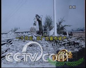 字幕:“2002年5月7日,分厂破产。一个月后,总厂也宣布破产。”