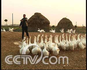佘国民:“我的鹅2007年保守一点讲,将近10万块钱的收入,净收入10万块钱,对,我有这么多鹅的吗,这一批鹅再一卖,讲句老实话就躲在家里数钱了。”