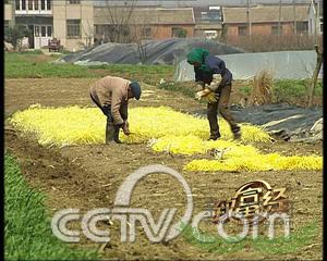 但这种方法产出的韭黄生长速度很慢。为提高全黄的产量,康贻华想了很多办法。一次在给青头黄覆盖塑料薄膜时,他突然受到启发,把白色的塑料薄膜换成黑色,不是既遮光又透气了吗? 康贻华试着在两亩地里覆盖上了黑色的塑料薄膜。