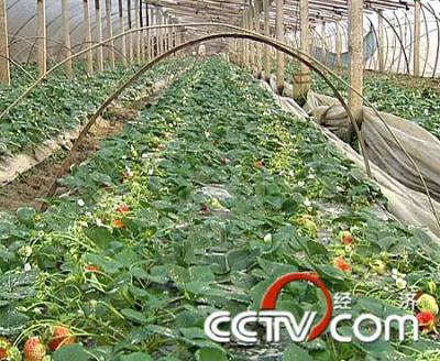江苏东海县黄川镇种植户孙咸庭:“把塑料布揭开摘了,摘完就手再把它盖死了,这就盖死了,不然这上面滴露水,一滴到草莓上,就会烂。”