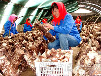 东海县黄川镇菇农正在采摘无公害香菇