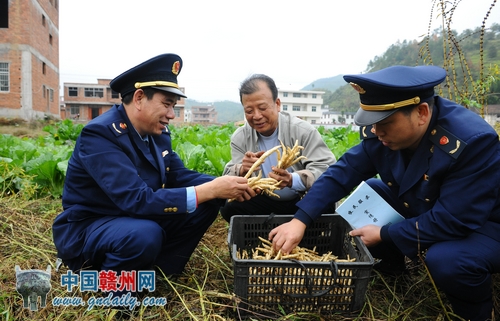 11月22日,兴国县工商局均村分局工作人员深入田间地头,向地参种植户吴显森了解种植情况,并宣传《农民专业合作社法》等政策法规。目前,该县农民专业合作社已发展到125家。农民专业合作社已成为带动当地农民增收致富和发展地方特色经济的生力军。 吴世灿 特约记者赖福鑫 摄