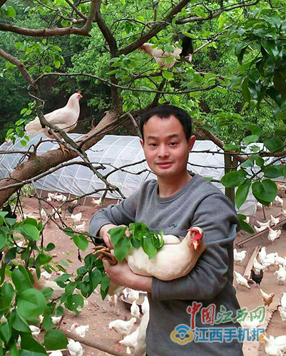 他虽然在外务工10年,但他牢记“叶落归根”古训;他虽然是个“鸡技盲”,但他立志当“鸡司令”;他虽然连续三年养鸡血本无归,但他凭着毅力与坚持,苦拼7年终成致富能手。这个面对失败不服输的“鸡司令”,就是湘东区东桥镇南岸村农民刘亮。