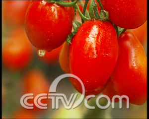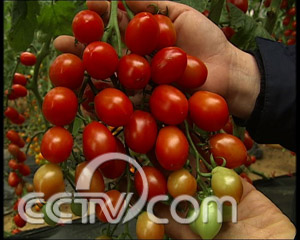 张青:“这些西红柿在欧洲非常流行,这是成串采收的,拿回家如果不吃,可以当装饰物,能存放40天。”