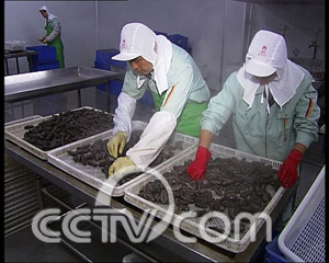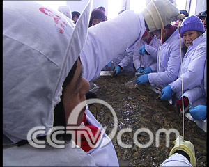王晓芹:“现场亲自参观一下,也亲自操作一下,看看我们的海参从新鲜加工成成品是一个怎样的加工过程,现在大家跟我走。”