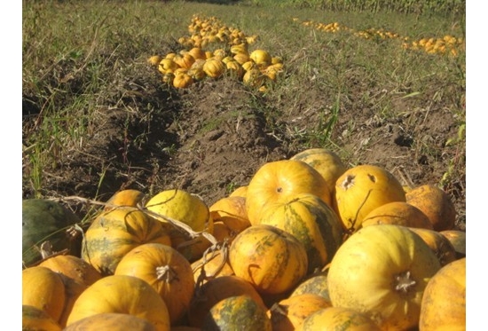 内蒙古扎兰屯市洼堤镇多籽角瓜大丰收,来到角瓜地,满眼的黄澄澄的大角瓜被攒成一趟趟、一堆堆,形成了最美丽的丰收图。