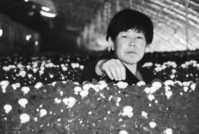 近日,内蒙古通辽市科尔沁区育新镇程兴隆村设施食用菌小区里一派繁忙,又一茬双孢菇到了采摘的时节。据了解,该小区共50亩地,现有21座大棚,保守计算每个大棚年纯收入3万多元。图为农民正在大棚中采摘双孢菇。