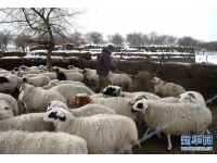 1月22日,吉仁巴雅尔在为羊群添草。