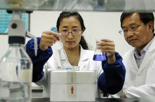 4月23日,在宁夏马铃薯脱毒种薯繁育中心,农业科技人员正在检测培育的马铃薯种薯的成分。近年来,宁夏回族自治区大力推进马铃薯脱毒种薯繁育工作,位于宁夏农垦现代农业示范园区内的马铃薯脱毒种薯繁育中心年产优质脱毒种苗4000-4500万株,繁育脱毒原种种薯8000万粒。发展脱毒种薯生产,不仅有效解决了宁夏马铃薯脱毒问题,有助于提高单产水平,而且还可为南方马铃薯生产提供优质种源,使农民通过种薯生产快速增收。预计到2012年年底,宁夏将建设一级种薯基地30万亩,生产种薯60万吨。