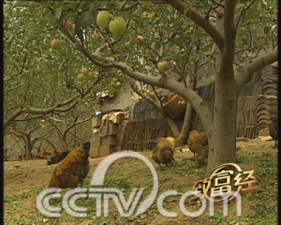生态鸡结合了肉鸡增肥快的优点,3个月后杨亮试养的100只生态鸡就出栏了。因为只喂食草料散养,生态鸡的肉质也很受市场的欢迎,每只都有10多元的利润。杨亮和也要砍果树的邻居一算计,平均每亩能养80只生态鸡,一年养四批,每亩果园就增加了3、4千元的收入。