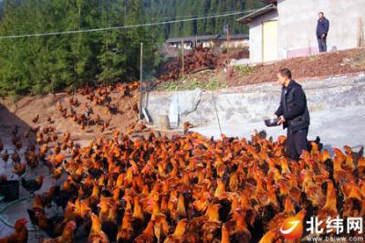 杜明波和杜江都是宝峰彝族乡的农民,多年来,长期在外打工。一个偶然的机会,他俩听说养鸡能挣钱,就坚定了回乡养鸡的决心。今年10月,杜明波和杜江共同建起了“杜氏林下养殖基地”。通过学习、探索逐渐掌握了养殖技术,并聘请了技术人员,定期对养鸡场进行技术指导和防疫。目前,他们的养鸡场已购进3000多只小鸡。预计年出栏将达到上万只。