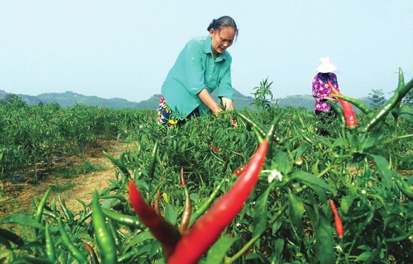 “将土地流转给业主种植小米椒可比自己种粮食划算多了。”今年62岁的贫困户李云告诉记者,他将自家2亩土地流转给合作社,不仅每年可收入1000元租金,他还在合作社打工,每天可拿100元工资。