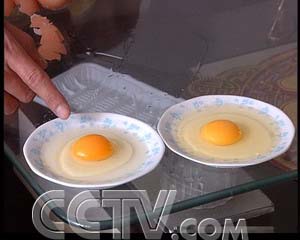 刘波:“咱这个虫子鸡蛋清澈,磕在盘里比较稠,比较集中,抓得比较紧一些,你看咱这个粘稠度很高,它不散,你看它这个普通鸡蛋散了。”