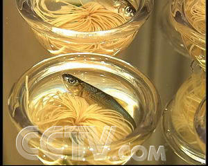 顾客:“我是来自青岛的,在我们那个地方吃过很多的海鲜了,我觉得这个东西虽然生长在淡水当中,但是超过我们的海产品那个鲜味,非常好。这个鱼一条好象100元,挺贵的。”