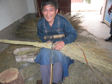 6月29日,山东省阳信县阳信镇东程村农民程宝海正在加工扫帚。程宝海一家3口人长年用传统手艺加工扫帚,年收入5万多元。截止到目前,该村有30多户专门从事扫帚加工生意,大发了一把“扫帚”财,一年有50多万元装进了这些农户的腰包。