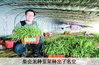 “像这样的冬暖式大棚,在柴家村还是头一份。”柴会龙指着地里一大片崭新的大棚告诉记者,原来村民种韭菜用的是小拱棚,它的优点是造价低,但不利于韭菜生长。柴会龙决定不用小拱棚,改用更先进的冬暖式大棚。他利用自己在大学期间创业积攒的十几万元以及争取来的20万元贷款,建起了11座大棚,当年就见到了效益。“韭菜长高了,品质好了,卖的价格也就上来了。”柴会龙笑着说。